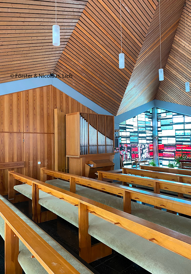 1967 Erbaut für das ev. Thomaszentrum in Gießen-Wieseck, dort später aus dem Altarraum nach hinten versetzt