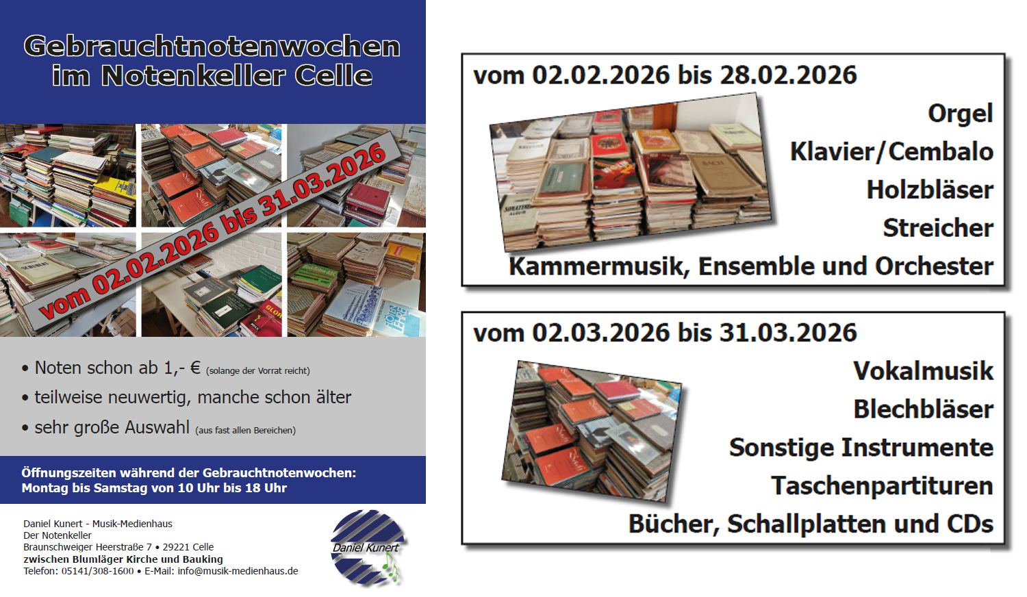 Besuchen Sie uns auch in unserem "Notenkeller" in Celle. Wir freuen uns auf Ihren Besuch.