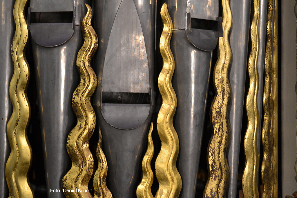 Leider gibt es keinerlei Originalpfeifen von Hans Scherer mehr. So kann man nur von einem neuen Orgelwerk in einem historisch bedeutsamen Gehäuse - man vermutet, dass in einigen Gesichtern am Prospekt Scherer und seine Gesellen zu sehen sind - sprechen.