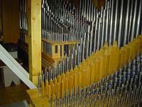 Als Besonderheit ist der Prospekt aus Holz zu erwähnen, der heute aus der Holzflöte 8‘ und dem Subbaß 16‘ besteht. |